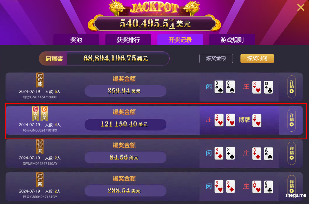 以下为本次AG JACKPOT爆奖信息: