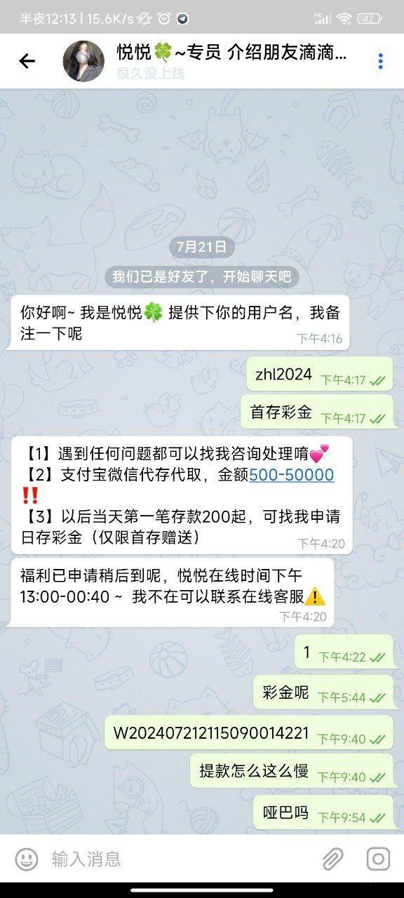 曝光黑平台铂莱大鳄娱乐,充值数百美元不到账,提款屡遭拒绝