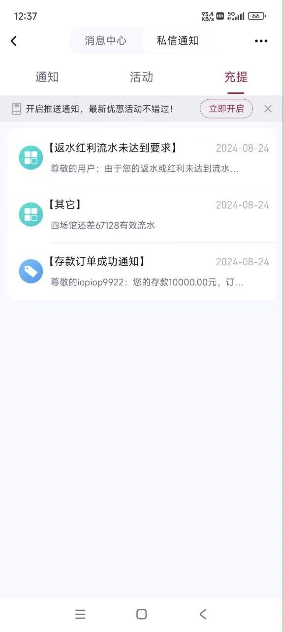 8月24号充了1万块钱。一开始提一万六的时候他让我打八倍流水。流水打够了提现他让我提供这个。这就是黑平台。如果