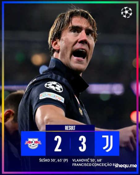布雷默、冈萨雷斯接连伤退,谢什科梅开二度,尤文门将格雷戈里奥出击禁区外手球被罚下。弗拉霍维奇双响扳平,小孔塞桑打进绝杀,10人尤文3-2逆转莱比锡。